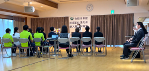 新たな仲間と共に、『挑戦と創造の一年』をスタートできるように、理事長及び施設長よりメッセージが送られました。
